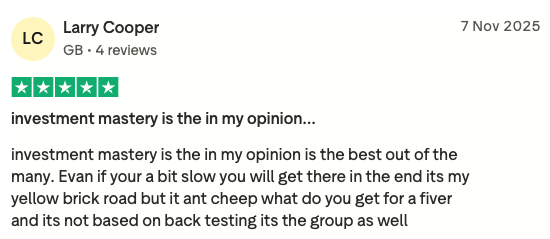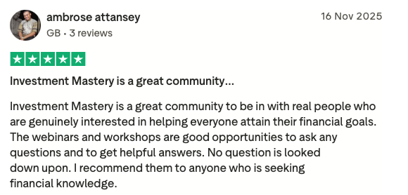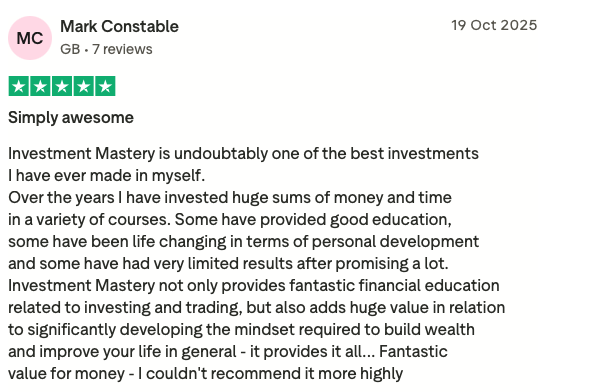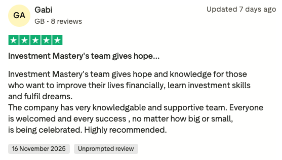 Join over 2,500 verified reviews y tens of thousands of success stories shared across our global community – all from professionals and business owners transforming their financial future with Investor Masterclass.