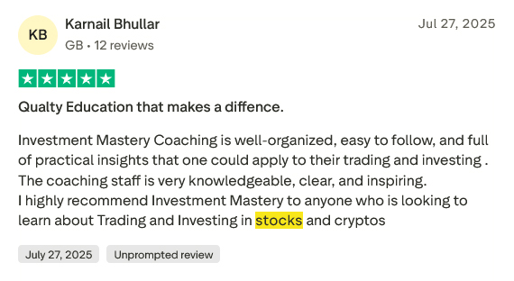 ALGEMENE ADVIESWAARSCHUWING EN INKOMSTENDISCLAIMER: All investment carries risk. Please note we are an education platform and, therefore, do not give any personal or financial recommendation. That means we will not take into account your personal objectives, financial situations or needs, even if they are known. Accordingly, the advice may not be appropriate for you. We may provide general advice regarding investment size, the level of margin needed and risk management techniques appropriate for our investing strategies. Please understand results presented are not typical. Past results, income and percentage claims are not indicative of future returns for you. Although our clients see above-average results, the average person who follows any training on investing gets little to no results. Financial instruments can go down as well as up resulting in you receiving less than you originally invested. Do not assume any recommendations, insights, charts, theories or philosophies will ensure profitable investing for you. Pictures used are for example purposes only. Please ensure you obtain professional or financial recommendation to ensure that investing in any financial products is suitable for your circumstances, and ensure you obtain, read and understand any applicable offer document. All testimonials on this website are real and can be found on Trust Pilot by clicking here. All testimonials on this page are real and can be found on TrustPilot by hier klikken.