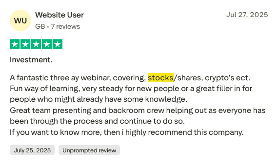 Watch trades placed live, get your questions answered, and see exactly how successful investors think and act. (Value £297)
